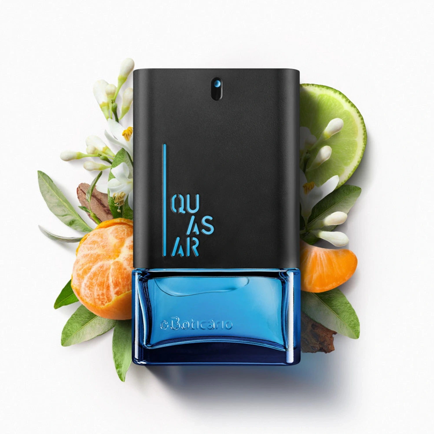 Sua embalagem moderna possui um novo formato que facilita a aplicação. Com fixação prolongada, Quasar é indicado especialmente para dias quentes. Seu uso é ideal na prática de esportes ou trabalho, garantindo uma fragrância fresca, cheia de energia, para o homem que busca  enfrentar seus medos e sempre se superar.