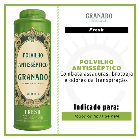 Antisséptica é a linha profissional dos atletas amadores. Inspirada no produto mais icônico da Granado, o Polvilho Antisséptico, a linha tem eficácia comprovada na prevenção e combate de fungos e bactérias.