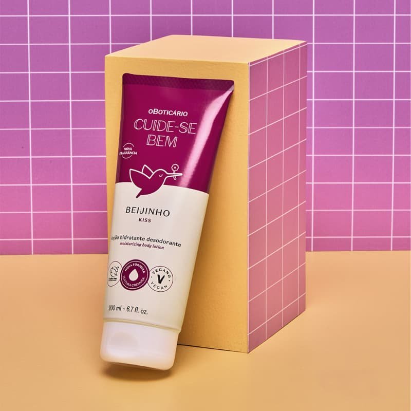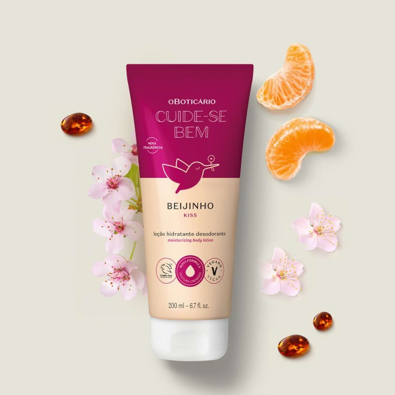 Com ativos mais hidratantes, o hidratante corporal da linha Beijinho entrega muita hidratação para uma pele bem tratada na rotina.