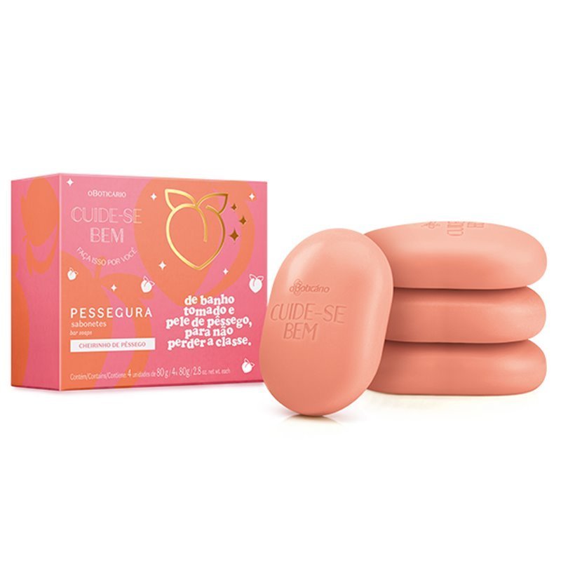Com 96% de ingredientes naturais, este item da linha Pessegura oferece uma opção de limpeza perfumada para um dia a dia com mais amor próprio e cuidado. O Sabonete Em Barra Cuide-Bem Pessegura é ideal para uma rotina mais leve e bela.