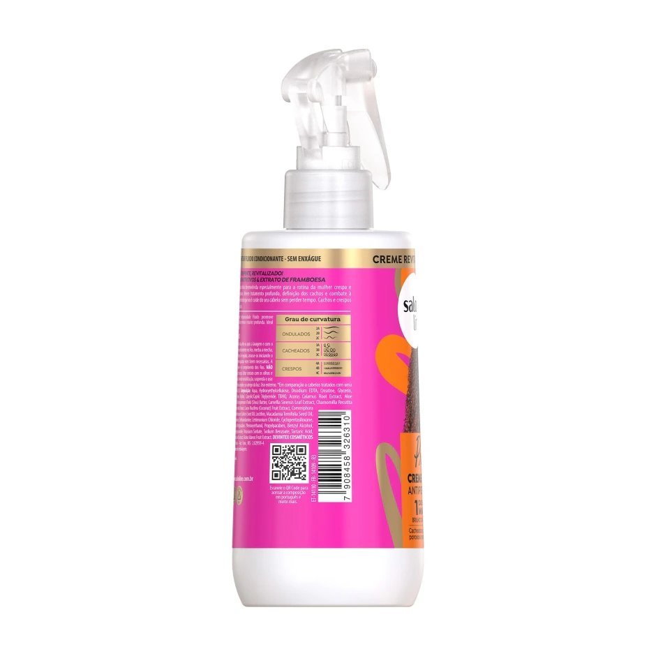 O Spray Revitalizador S.O.S Cachos Day After refresca instantaneamente os fios e devolve a definição, o brilho intenso e a maciez profunda aos cachos — ideal para revitalizar o cabelo no dia seguinte à lavagem.